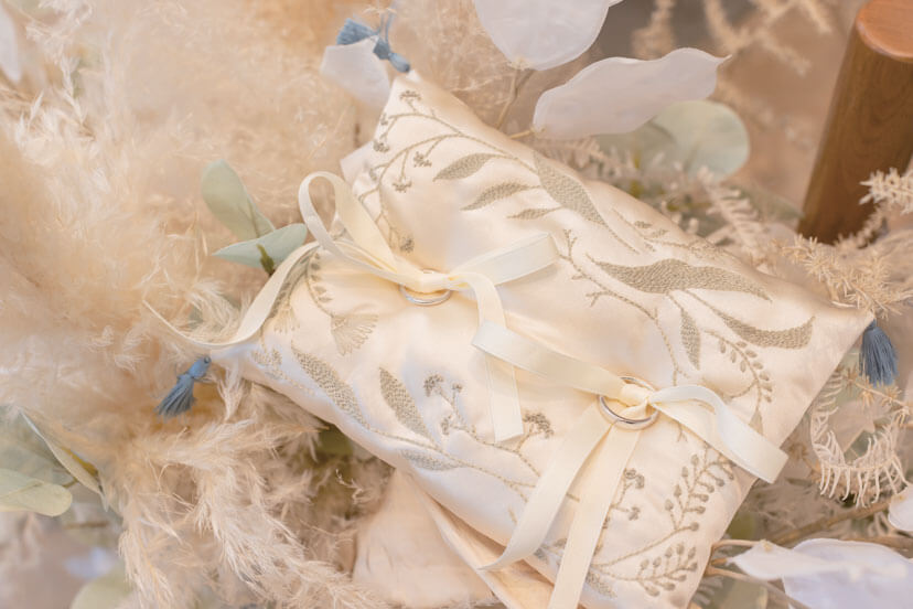 リングピローは姉からのプレゼント。家族の温もりが伝わる。