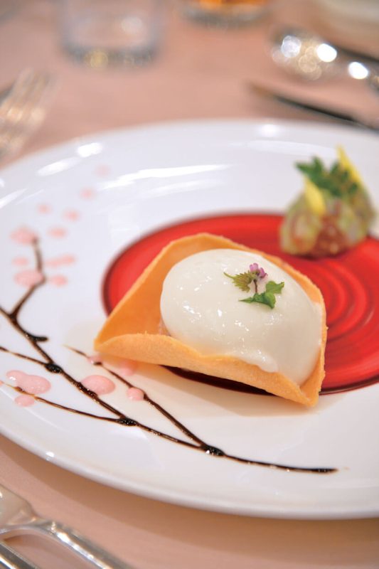 福田総料理長からのメニュー説明も特別感のある演出に。