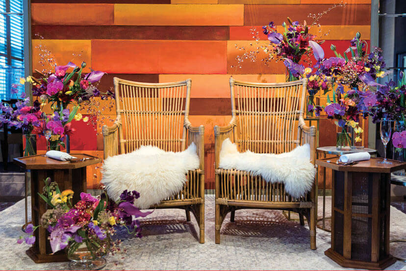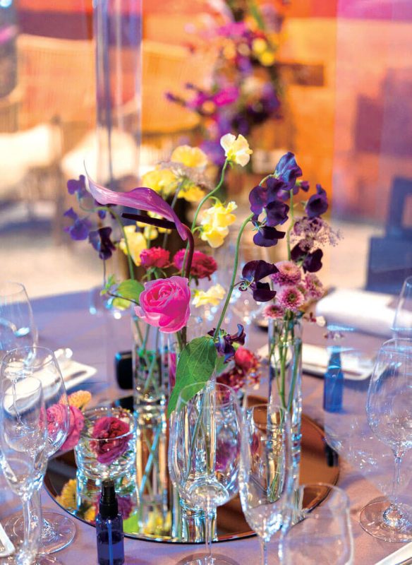 印象的な色使いの会場装花でコーディネート。