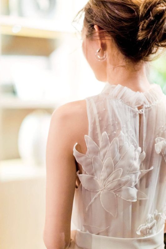レースが魅了するバックスタイル。