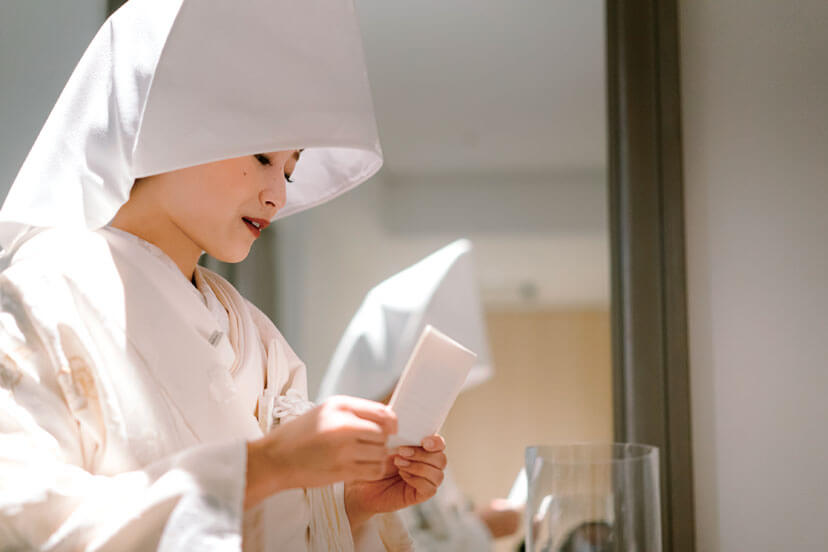 披露宴では両親への手紙の演出はしなかったが、挙式前に両親と花嫁だけで過ごす時間があったので、気持ちをしたためた手紙を朗読。プライベートな空間で感謝を伝えられて感無量。