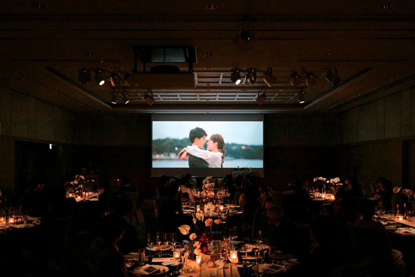 ふたりらしさ満載のムービー演出。ゲストの視線はスクリーンに釘付けに!