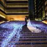 大階段でのドラマティックな構図や、エントランスからロビーに抜ける通路のアートをバックにしたドレス姿など、たくさんの写真を撮影。