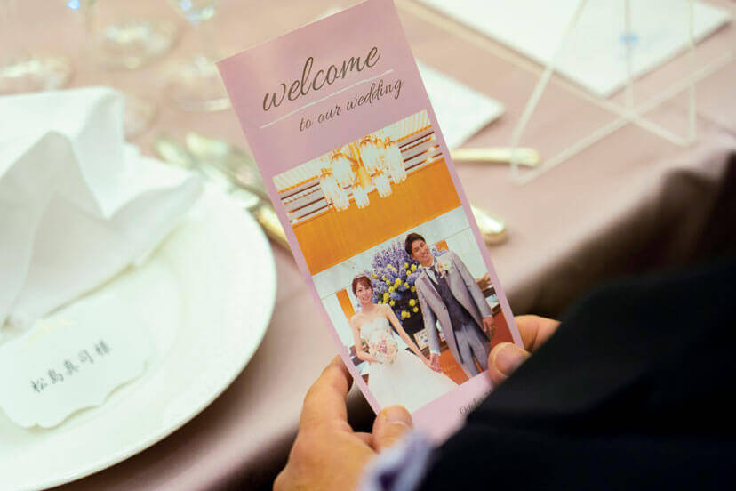 席次表にはふたりのプロフィールも。このほかウエルカムボードも新婦による手作り。ゲストからも好評だった。