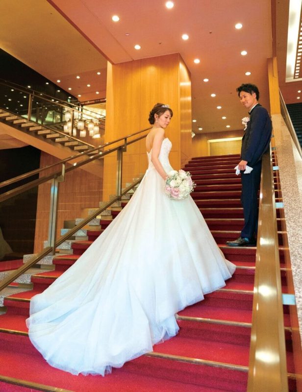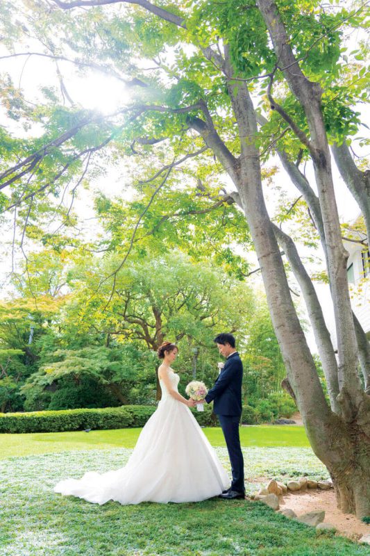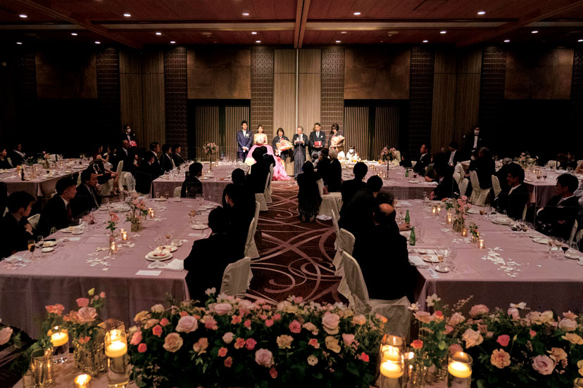 同じ職場に勤務し、食事会をきっかけに交際を始め、人生を共に歩むと決めたふたり。コロナ禍でも結婚式を諦めたくない、医療従事者の多いゲストに安心してもらいたいという願いから挙式と披露宴を分けて行うことに。まずは親族のみ少人数の挙式を行い、和やかな空気が流れるなかで誓いを交わした。披露宴は5ヵ月後、制限のない状況になって開催できた。ふたりのいちばんのこだわりは「ホテルオークラ神戸」の美味しい料理をゆっくり味わってもらうこと。余興などを詰め込みすぎない余裕のあるタイムスケジュールで、ゲストが着席したまま楽しめる演出を取り入れて寛いでもらうことを第一に考えた。サンクスバイトなど、家族にスポットが当たる演出で感謝を伝えられたこともかけがえのない思い出に。両親への想いを込めて読み上げた手紙ではもらい泣きするゲストも。家族の絆がさらに深まり、ゲストも感動した一日。ふたりらしく上品で温もり溢れる披露宴となった。無事に結婚式ができるか、思い悩むふたりをサポートし続けてくれたプランナーに感謝でいっぱいと語っていた。