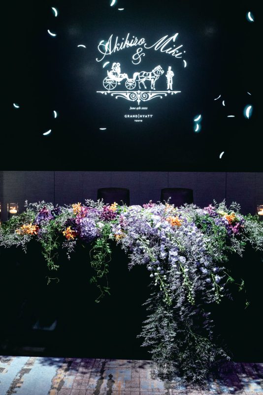 高砂は藤棚をイメージしたフラワーアレンジメントで。