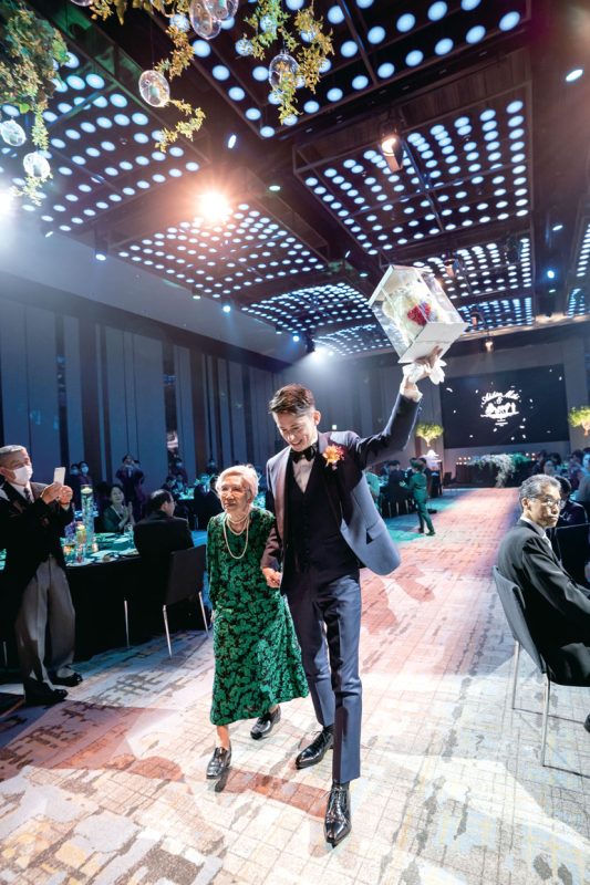 新郎が大好きな祖母へ96歳の誕生日プレゼントを贈り、サプライズで一緒に退場。