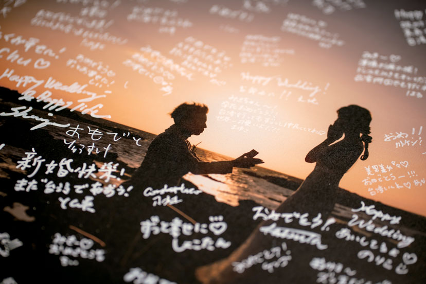 前撮り写真に寄せられたゲストからの祝福のメッセージ。