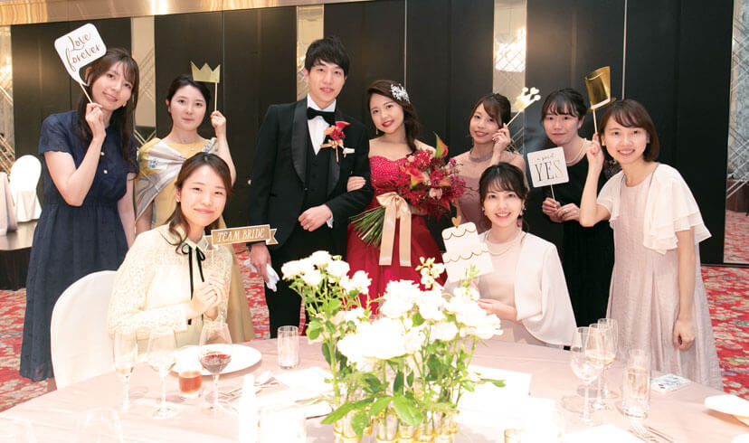 フォトプロップスを用意して、思い思いのポーズで和やかなフォトラウンドに。