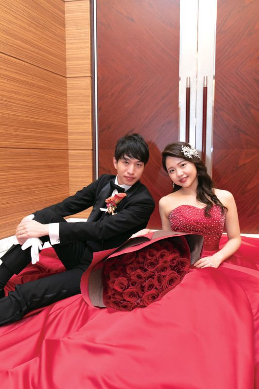 東京タワーに一番近い、東京らしい景色と公園の緑に囲まれた素晴らしいロケーションを舞台にしたウエディング。挙式は清々しい自然と木漏れ日を感じる「森のチャペル」で、大切な家族と大勢のゲストに見守られた心温まる祝福のセレモニーに。フラワーシャワーやブーケトス、ゲスト全員での記念撮影も叶い、一生の思い出となった。披露宴はホテルで一番の豪華な会場で、シャンデリアやキャンドルの光に彩られたふたりの世界観のなかで、リラックスしながら会話と美味しい料理を楽しんでもらうことがコンセプト。新郎新婦自らゲストテーブルをラウンドして記念撮影をしたり、ふたりにまつわるクイズと賞品を用意したビンゴ大会を行い、大いに盛り上がった。「ホテルの豪華な空間や、上質なお料理やサービスは、ゲスト皆が大満足。結婚式が終わっても、またしたい!と思えたほどずっと楽しい時間でした」という新婦。遠方からのゲストは宿泊や東京観光も楽しんだりと、それぞれのゲストが結婚式を満喫してくれたことが何よりうれしかったと語った。