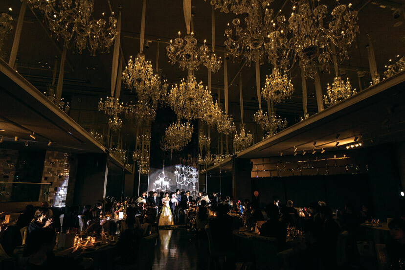 シャンデリアの煌めきに包まれてお開きへ。