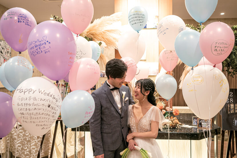 友人からの寄せ書きバルーンと一緒に。