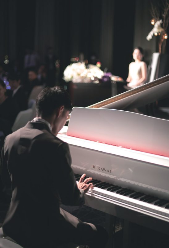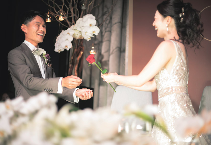 新郎から新婦へ、ローズセレモニーとピアノの演奏をサプライズ。