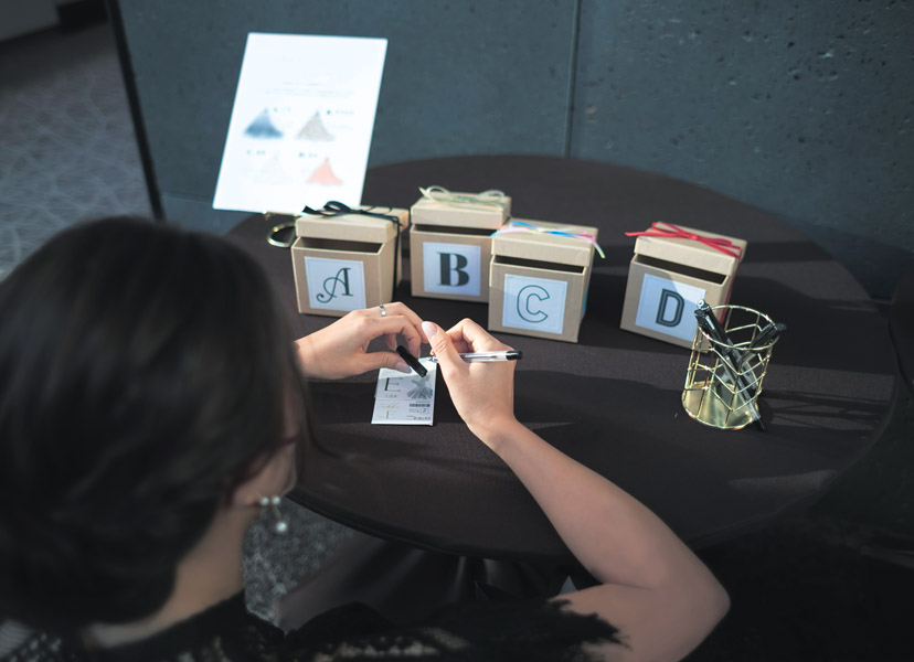 ドレスの色当てゲームの投票箱もお洒落に手作り。