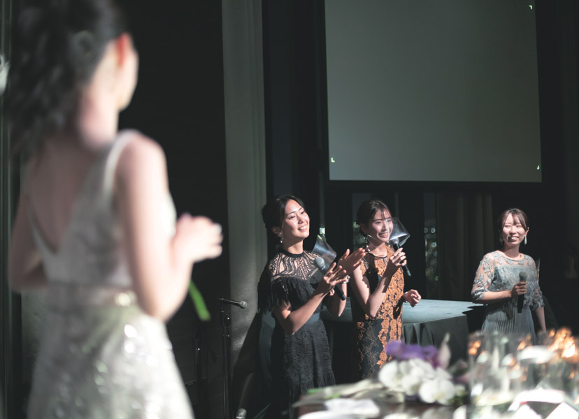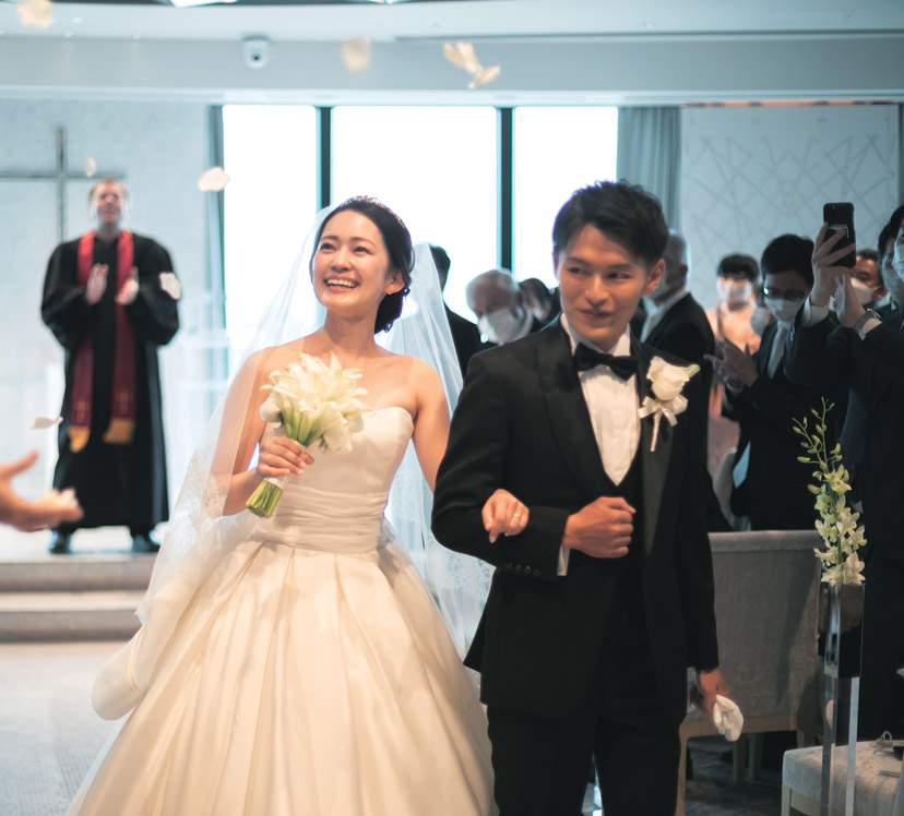年にヒットし、新婦母が大好きな「T r u e L o v e 」を演奏した。サプライズが多かったのにもかかわらず、すべて大成功だったのは、準備中から当日の進行までホテルスタッフのサポートがあったからと語るふたり。「思い出深い素敵な一日になりました。」