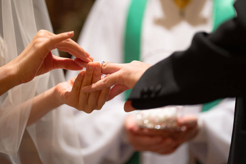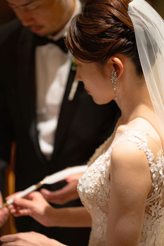ゲストの皆さまに温かく見守られ、夫婦の誓いを交わすことができた。