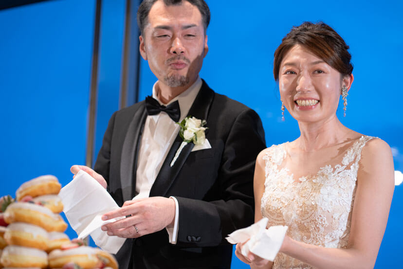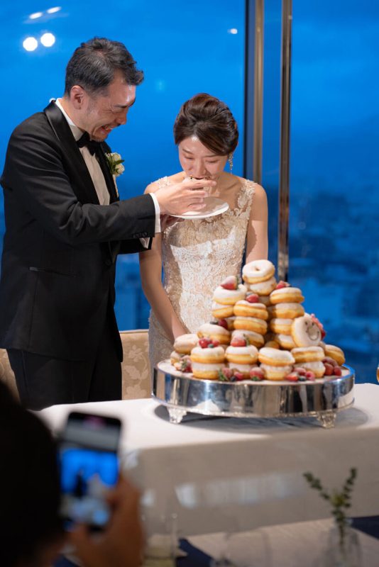 お互いにドーナツを食べさせ合うファーストバイトで盛り上がった。
