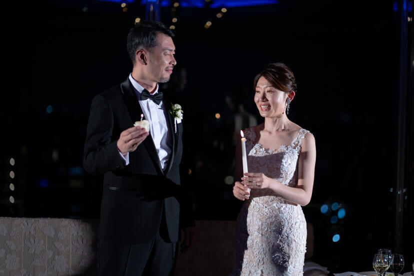 キャンドルリレーで再入場。お開きにはキャンドルセレモニーを全員で行った。