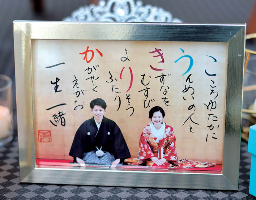 ふたりの名前がメッセージに入ったフォトを飾った。