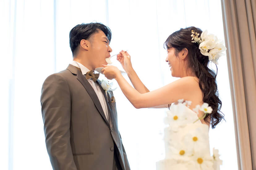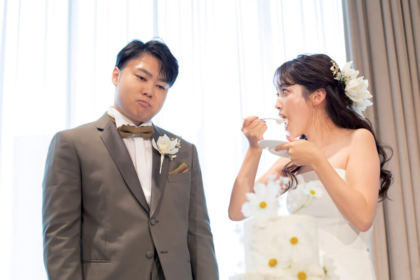 ファーストバイトでは新郎のお茶目な表情にも注目。
