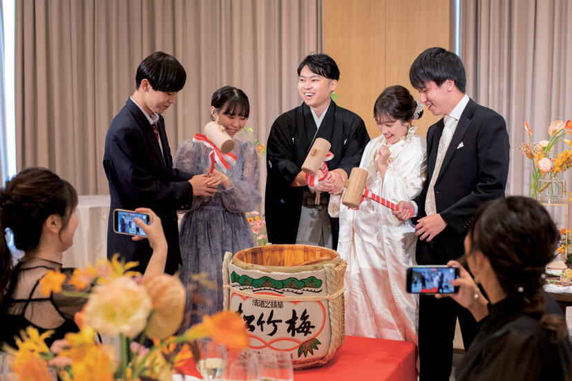 ふたりのきょうだいが揃って鏡開き、ゲストも大盛り上がり。