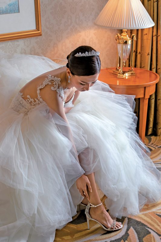 海外から取り寄せた、美しいシルエットのウエディングシューズ。