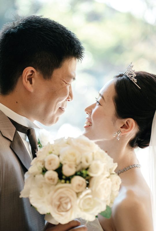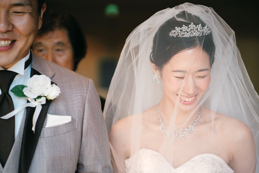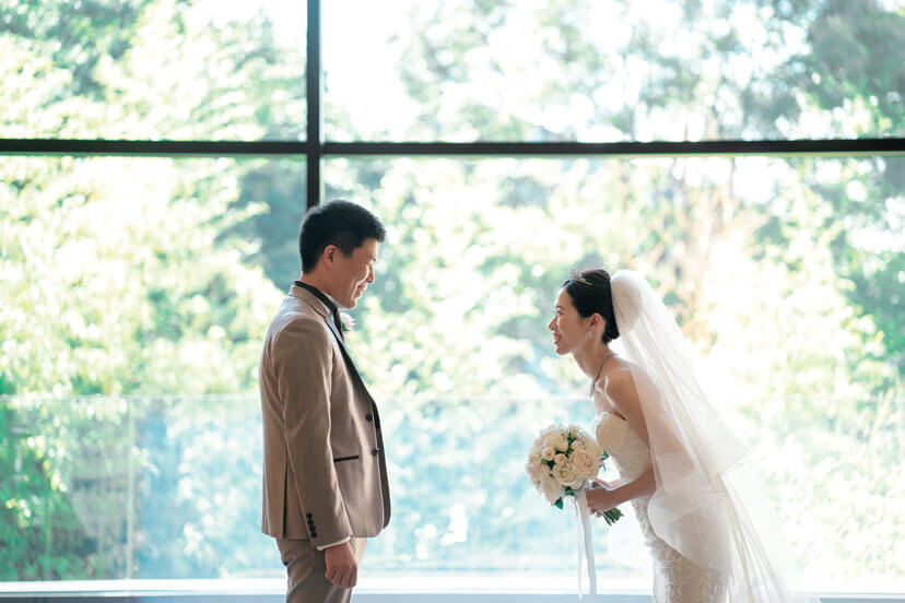 ドレスは目にしていた新郎だったが、ティアラを身に着けてダイヤモンドの輝きに包まれた花嫁を見るのは初めて。「キレイだね」と心からの言葉を伝えてくれて、花嫁も胸がいっぱいに。