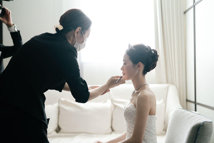 2泊3日のステイ&ウエディング、お支度は緑豊かな風景と共に寛ぎながら。「エクセルコ ダイヤモンド」の溢れる程の輝きを放つ「星の畑」という名を冠した「シャンド エトワール」は花嫁の個性にぴったり。