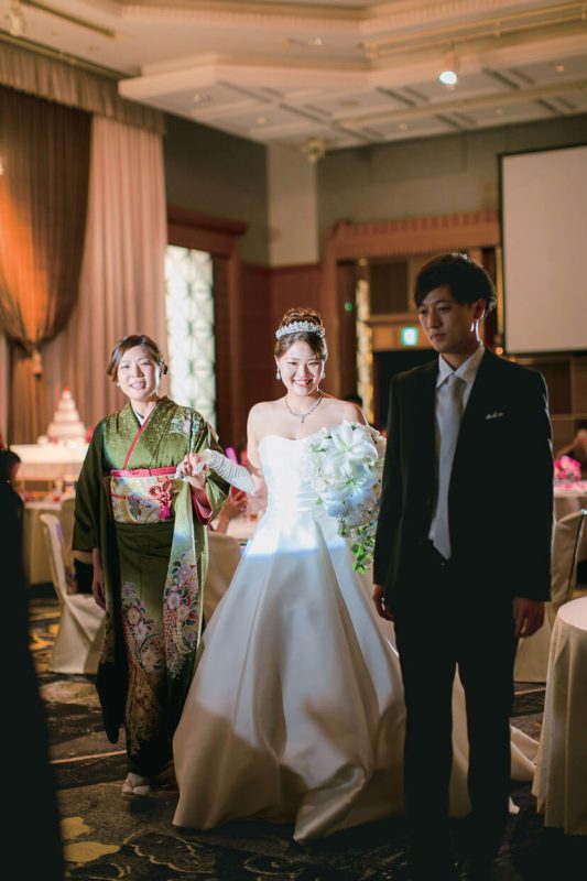 新婦は妹弟と、新郎は祖母のエスコートで退場した。