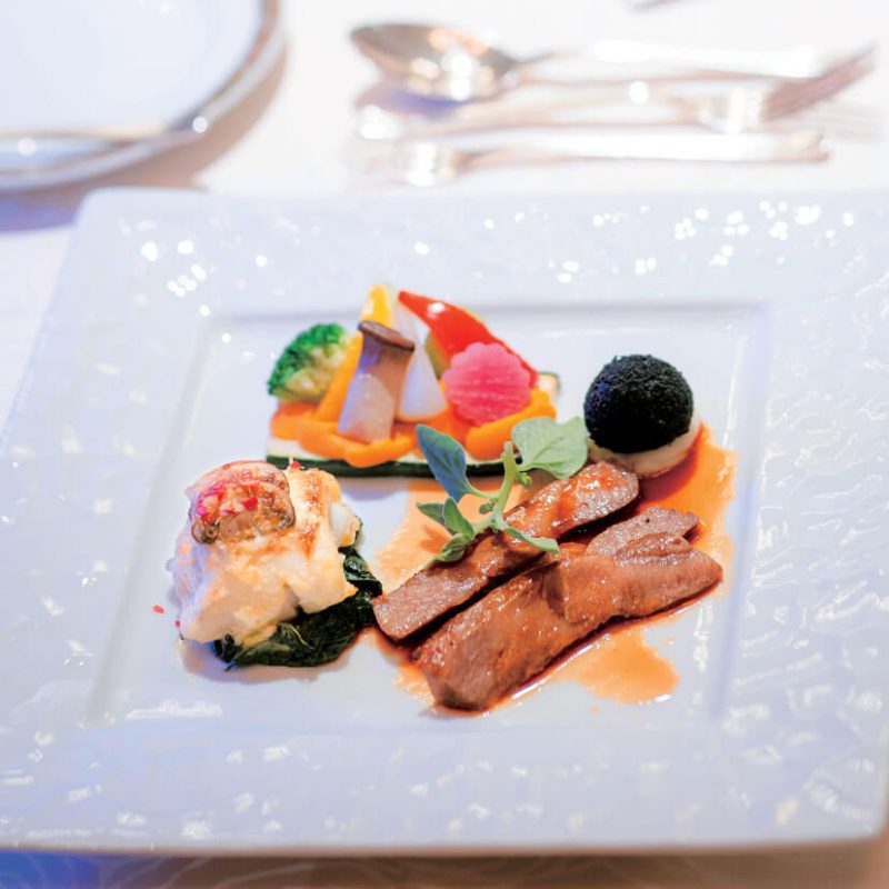 色鮮やかなフランス料理 4皿コース。男性ゲストから「しっかりボリュームがあって、ゆっくり楽しめた」と、うれしい感想も。