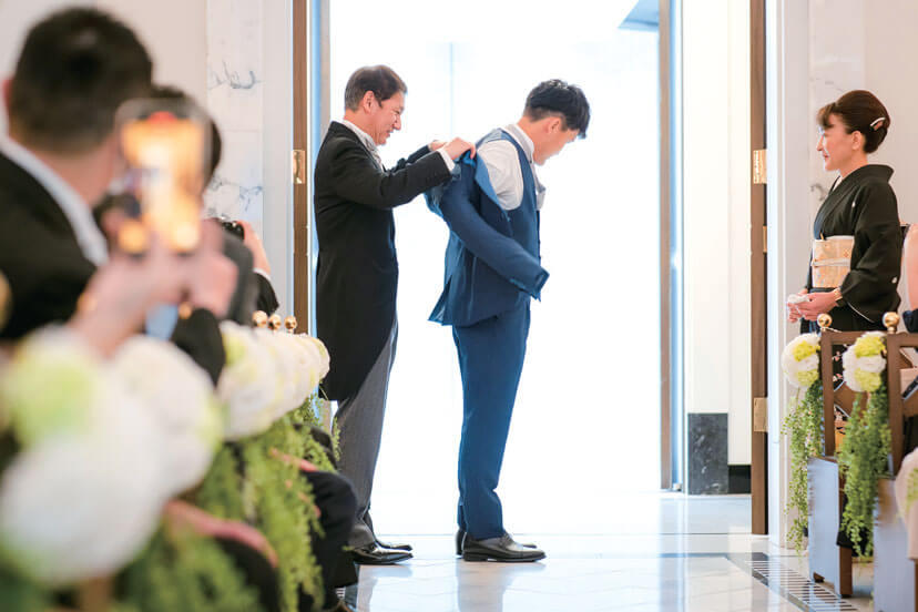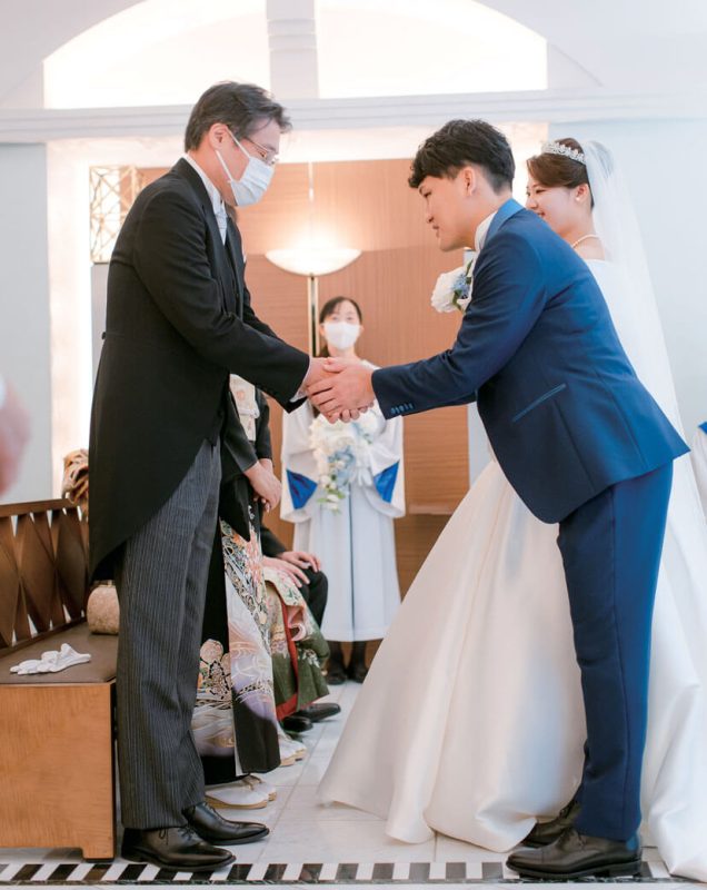 両家両親と握手を交わす「家族の儀」に、改めて新しい家族となることを実感。