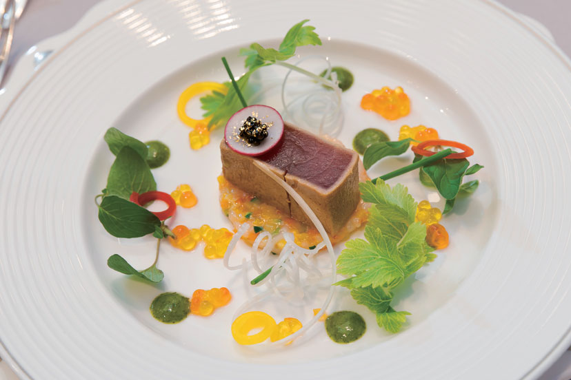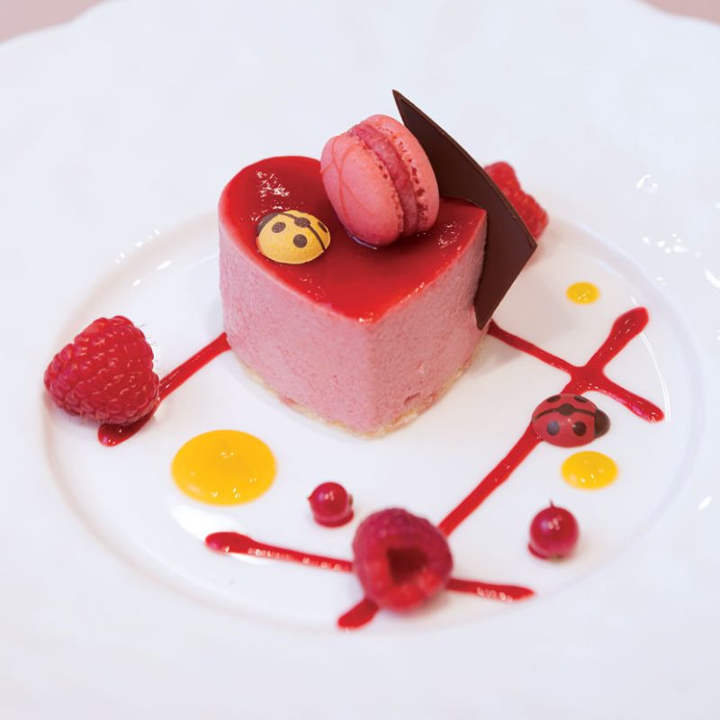 コースメニューは人気のフレンチをセレクト。デザートは、てんとう虫モチーフをあしらった愛らしい一皿。