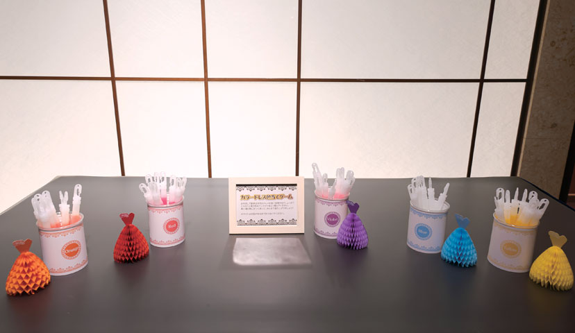 ゲスト参加型の「カラードレス色当てクイズ」。色を予想して、ウエルカムスペースに置かれたペンライトを選ぶのも楽しい時間に。