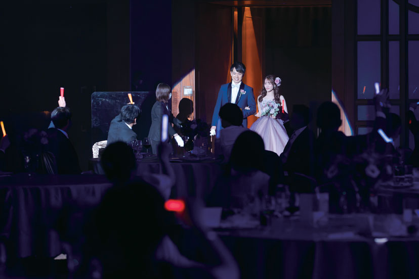 お色直し入場では、一人ひとりが選んだ色のペンライトを振って盛り上がった。