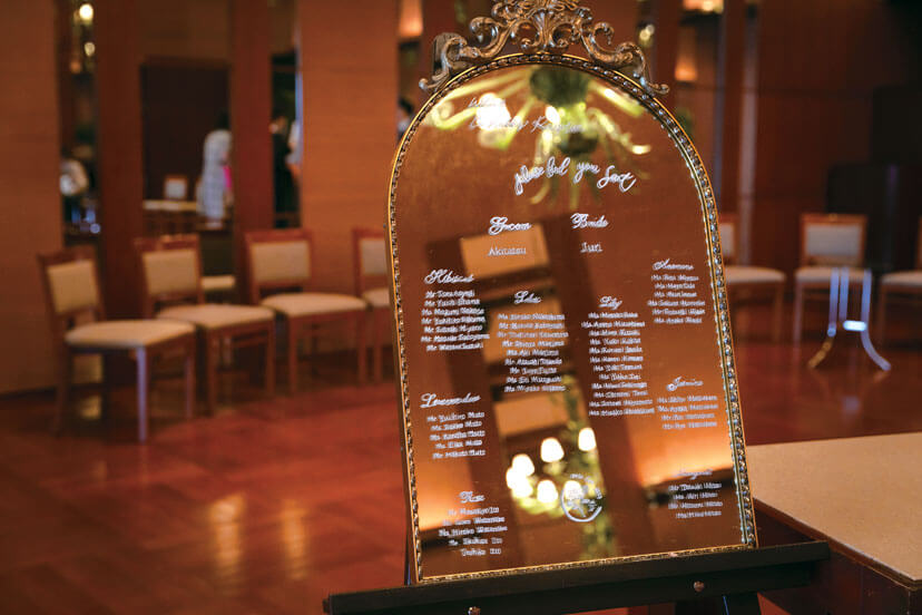 キャンドルと水中花、ミラーだけのテーブルコーディネートで洗練された都会的な上質空間が完成。