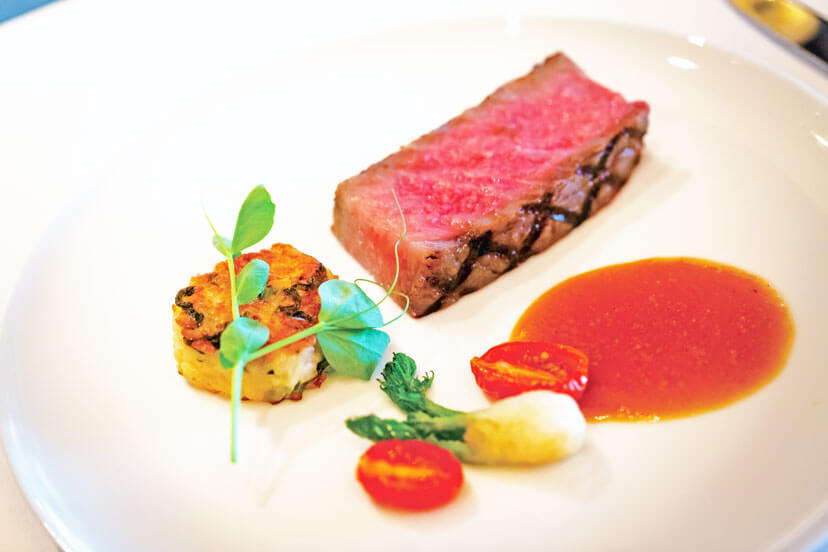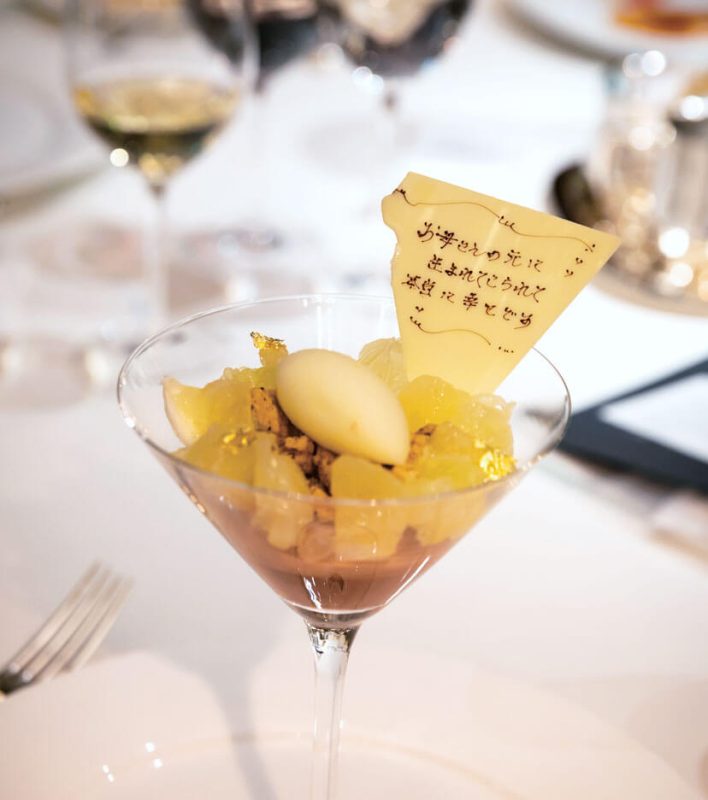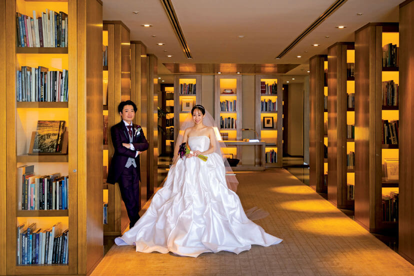 日本なのにどこかグローバルな雰囲気を感じさせる世界観をウエディングのコンセプトに掲げ、「和×洋」を取り入れながら、上質な空間を創った新郎新婦。マホガニー調のシックな会場に設置したロングテーブルはキャンドルの灯火だけで装飾した大人のシンプルスタイリッシュなコーディネートに。お色直しでは和の装いで登場した。おもてなしの料理はシェフと創り上げたオリジナルメニュー。新婦の地元の食材や、両家両親の好物を取り入れるなど趣向を凝らして完成した、世界でひとつのコース料理を堪能してもらった。ドリンクにもこだわり、大好きな銘柄のシャンパンや日本酒・ワインのほか、オリジナルのカクテルを振る舞った。そのほか、ゲストに合わせた想い出のBGMやムービー演出、ギフトなど、一人ひとりに伝えたかった感謝の想いをしっかり届けられた。「親孝行ができたこと。そして新しい家庭を築くけじめになったこと。この先、何度も思い出す愛に溢れた素敵な時間と空間でした」と結婚式の日を振り返った。