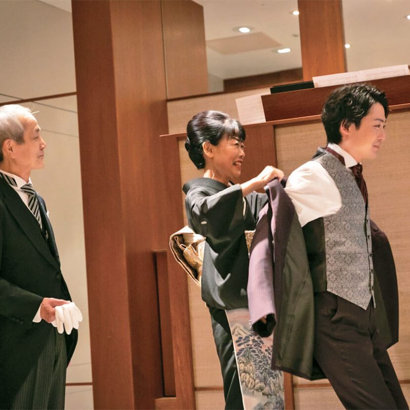 新郎の“最後の身支度”という意味も込めて行ったジャケットセレモニー。