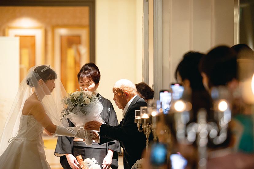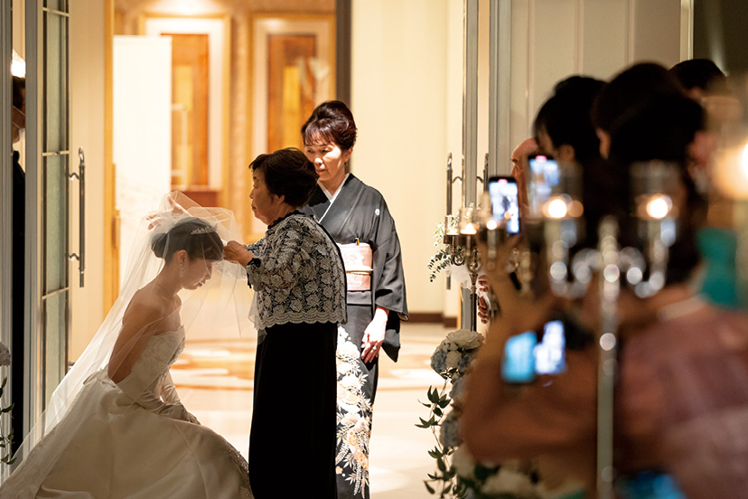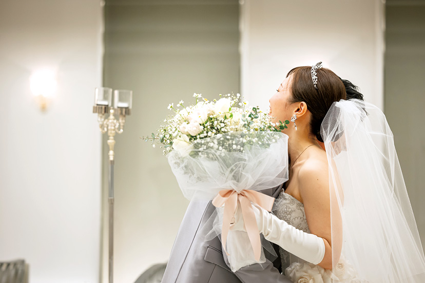 新婦母と同じように惜しみない愛情を注いでくれた祖父母に感謝の気持ちを伝えるため、ベールダウンとブーケセレモニーをお願い。祖父母からは「大役をもらえて一生の思い出になった」と喜んでもらえた。
