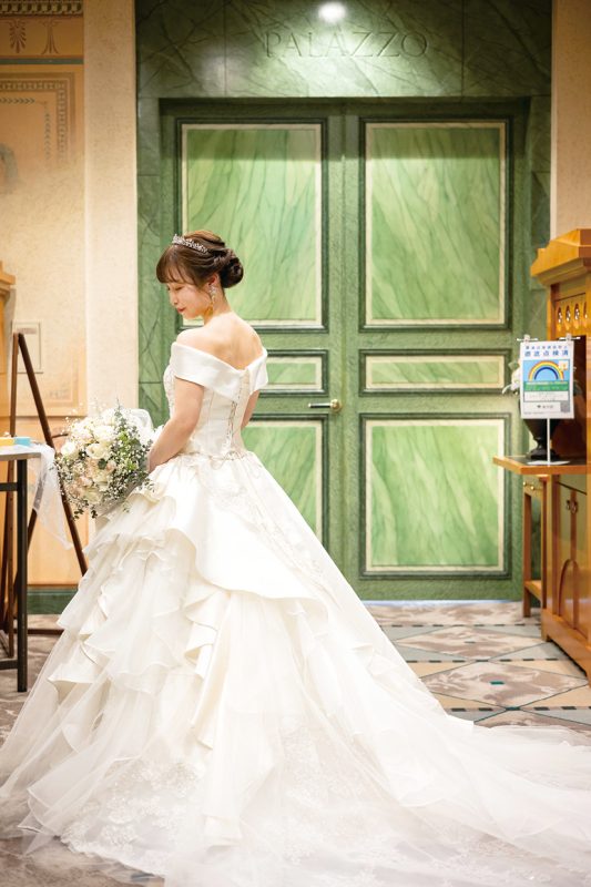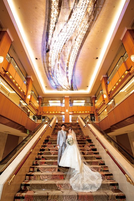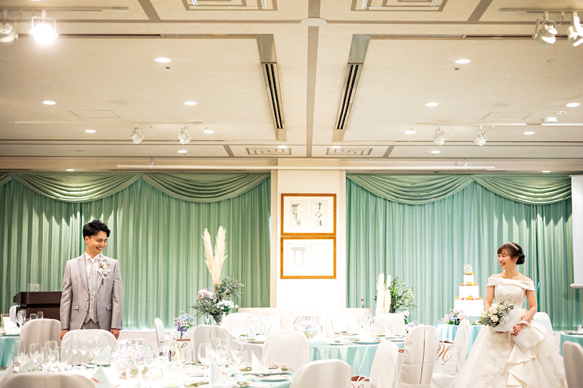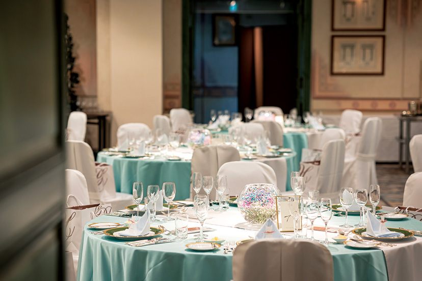 古代ギリシャ・ローマ時代の宮殿をモチーフにした優雅なバンケットはこの上なくドレスが映える空間。