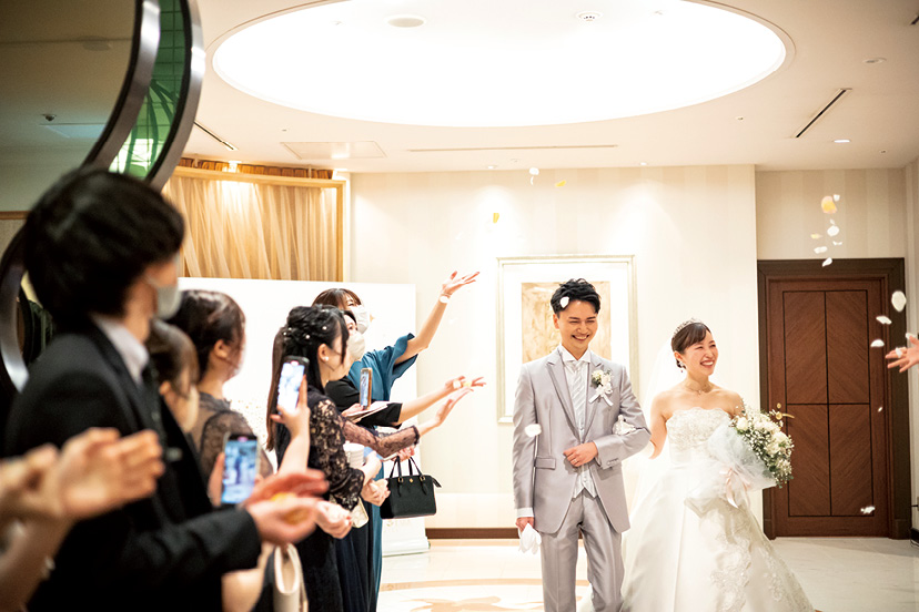 誓いの後、フラワーシャワーでゲストから温かな祝福。