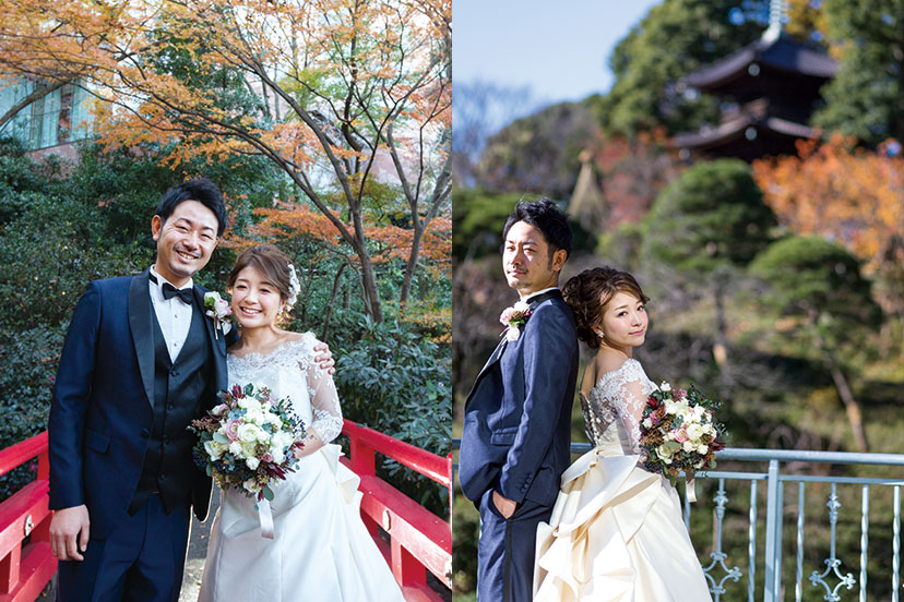 紅葉が美しい庭園での写真撮影を。この美しい景色もふたりの永遠の思い出に