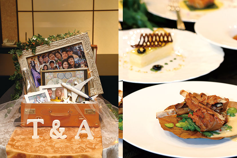 (左)綾香さんの手作りアイテムの数々(右)ゲストからも好評だった婚礼料理