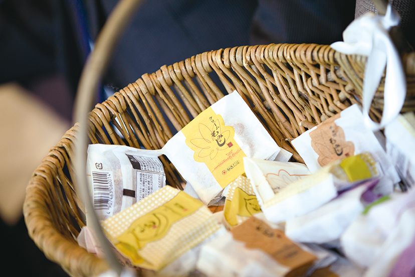 14. テーブルラウンドでは広島県名産のもみじ饅頭を配った