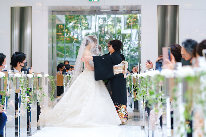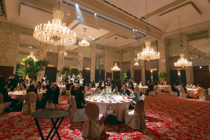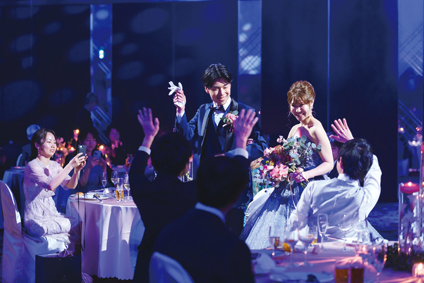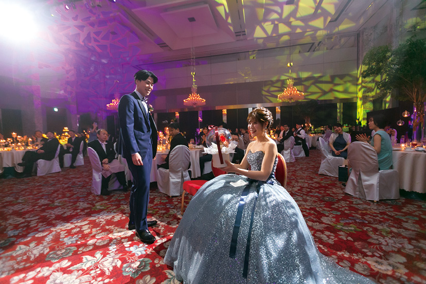 シャンデリアをいかした光の演出にゲストも圧巻の、ドラマティックな再入場。