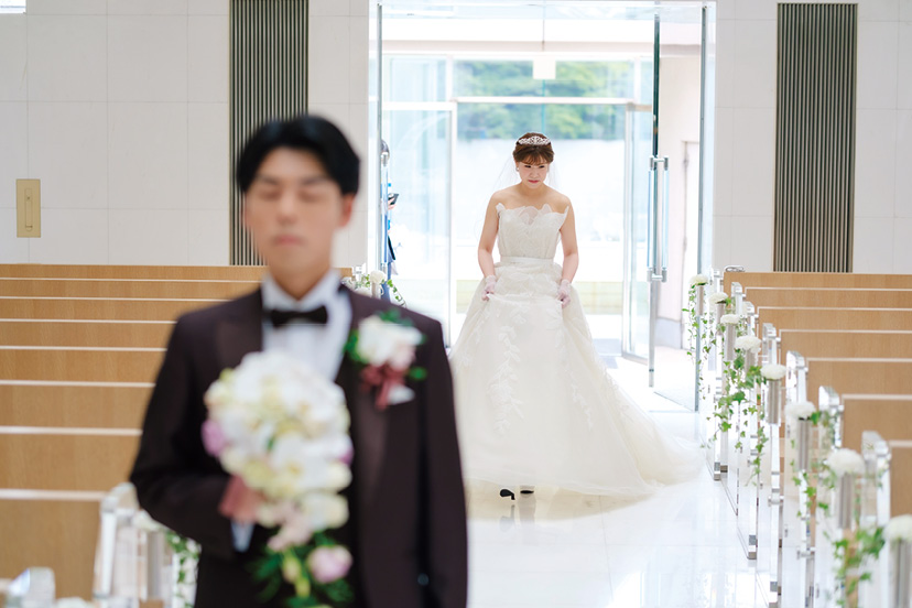 挙式前のチャペルでファーストミートを。ふたりの最良の日がスタート。