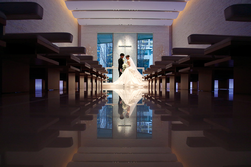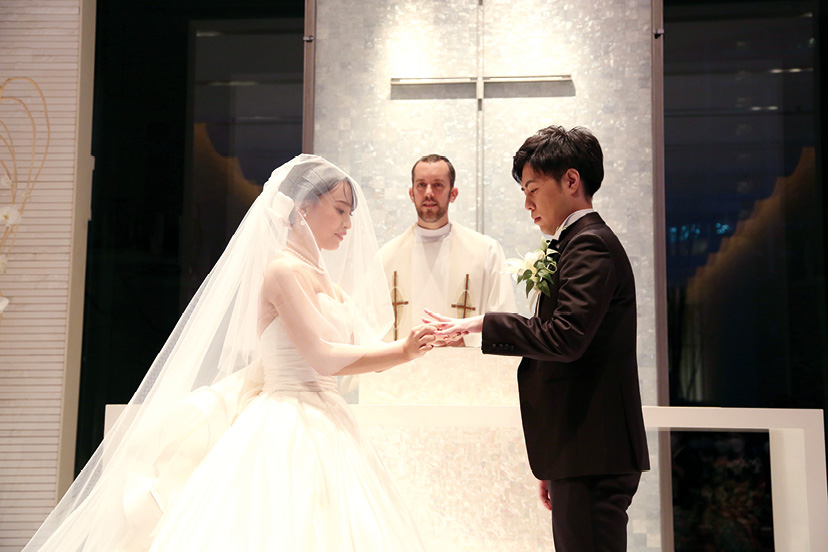 厳かな雰囲気のなか、愛を誓い合うキリスト教式。お互いへの感謝の気持ちがより深まった。