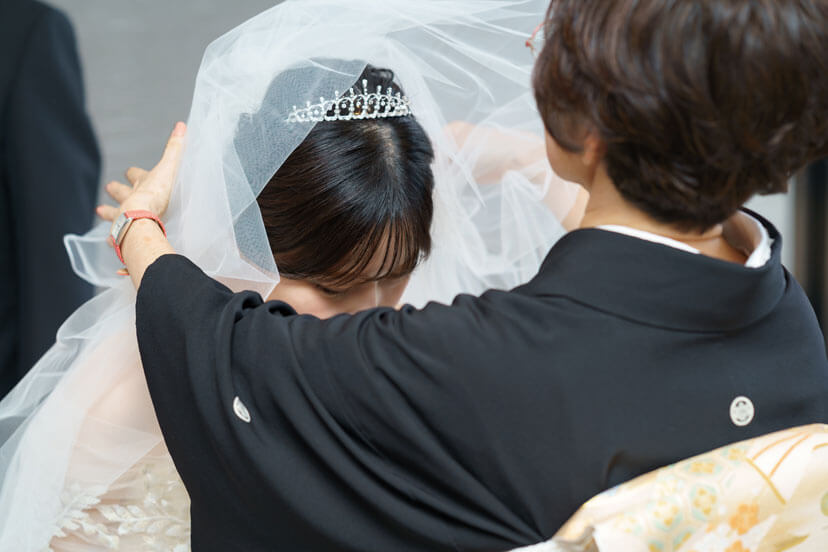 親族顔合わせでドレス姿を披露した時、「ティアラが綺麗ね!」と真っ先に新婦母が感激。式後に友人たちから送られてきた写真はどれもティアラが煌めき、写真映えに重要なアイテムだと実感。