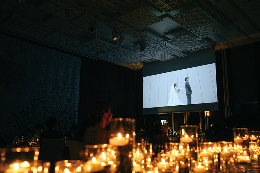 竹林が迎えるホテルは、和と洋が融合する京都の美しさが薫る館内へ一歩進むたびにワクワク感が増し、ここならゲストに楽しんでもらえると確信。木の香りが心落ち着くチャペルも決め手となった。そのチャペルでは、ふたりの言葉で大切なゲストへ感謝を伝える人前式を準備。幸福・信頼・希望など、12の言葉にまつわるエピソードを持つゲスト一人ひとりを紹介するダーズンローズセレモニーや、誓いの言葉を手紙にした朗読も、新郎新婦をより深く知るきっかけとなった。披露宴は多彩な紫の花と、たくさんのキャンドルの灯が創り出すドラマティックな空間に。おもてなしは、至福の料理に新婦が好きなマンゴージュースを追加し、受付やスピーチを担当したゲストへメッセージプレートのデザートも手配。新郎は弟に、新婦は姉に行ったサンクスバイトは、両親の喜ぶ笑顔に胸がいっぱいになった。再入場は、新郎の好きな赤を選んだ艶やかな色打掛で。ドレスも和装も映えるホテルは、ふたりが思い描いていた以上の結婚式の舞台となり、大切な場所になった。(Hotel Wedding WEST&TOKAI 14号掲載)