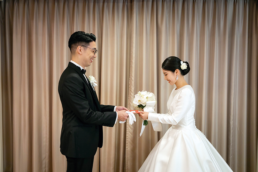 誓詞を読み上げる新郎の頼もしい姿に改めて結婚を実感。