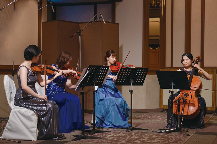 現在プロのチェリストをしている新婦の同級生による弦楽四重奏。中学高校と毎朝聞いていた曲に友人たちも懐かしく喜んでいた。